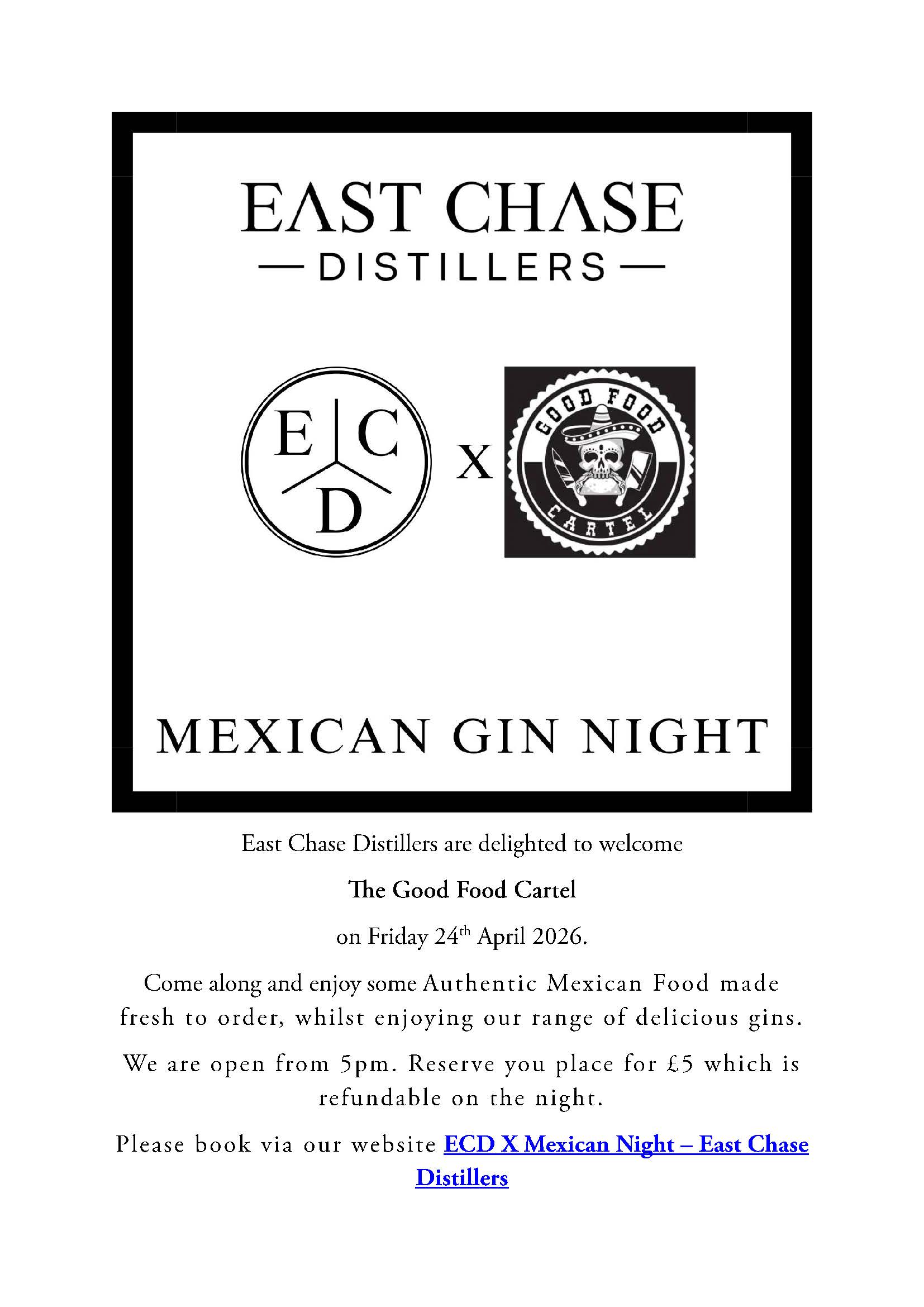 The Good Food Cartel are coming back to our distillery on Friday 24th April for a night of the best local Mexican street food. Come and enjoy or Heritage Gin and Premium vodka's.