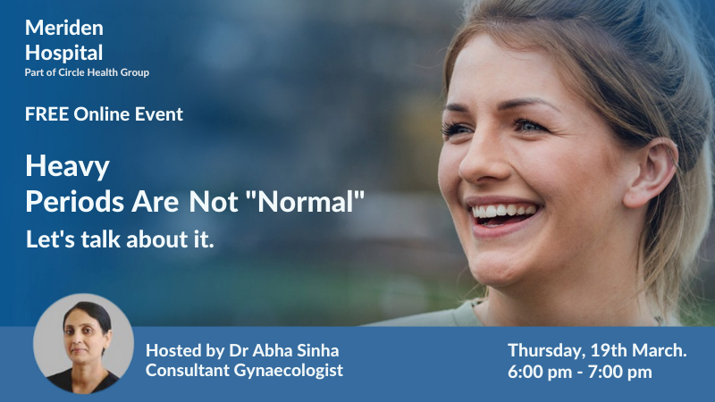 Join Dr Abha Sinha, Consultant Gynaecologist at Meriden Hospital, for an informative and supportive online conversation that breaks the silence around heavy menstrual bleeding. This session is designed to help women better understand what’s normal, what’s not, and when it may be time to seek expert advice.