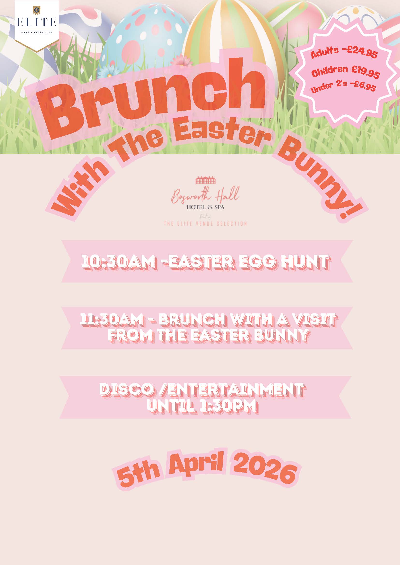 Join us at Bosworth Hall Hotel & Spa for Brunch with The Easter Bunny!