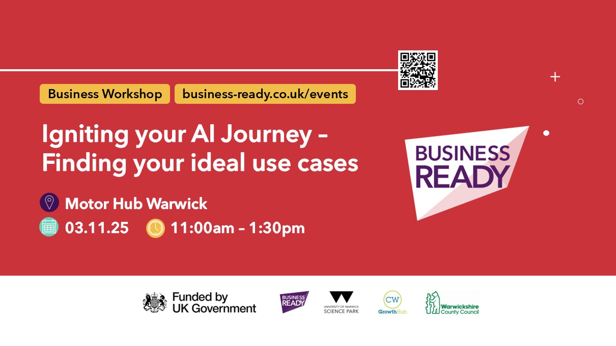 These workshops are delivered as part of the Business Ready programme to support tech-based and knowledge intensive businesses, with high growth potential based in Warwickshire.
