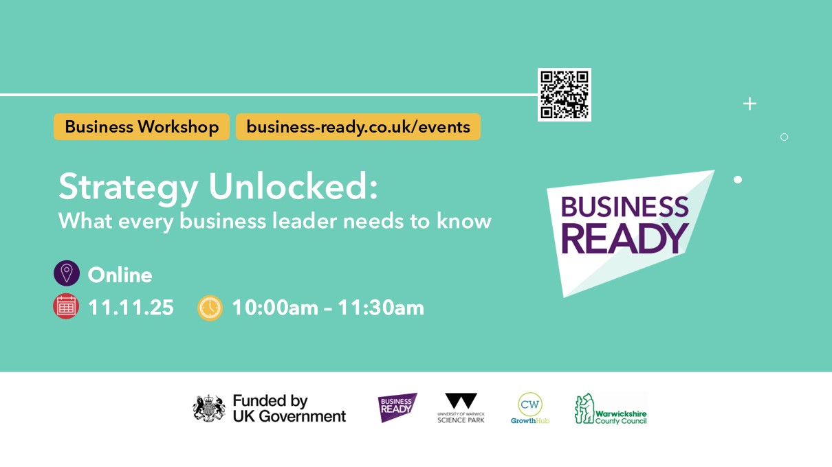 These workshops are delivered as part of the Business Ready programme to support tech-based and knowledge intensive businesses, with high growth potential based in Warwickshire.